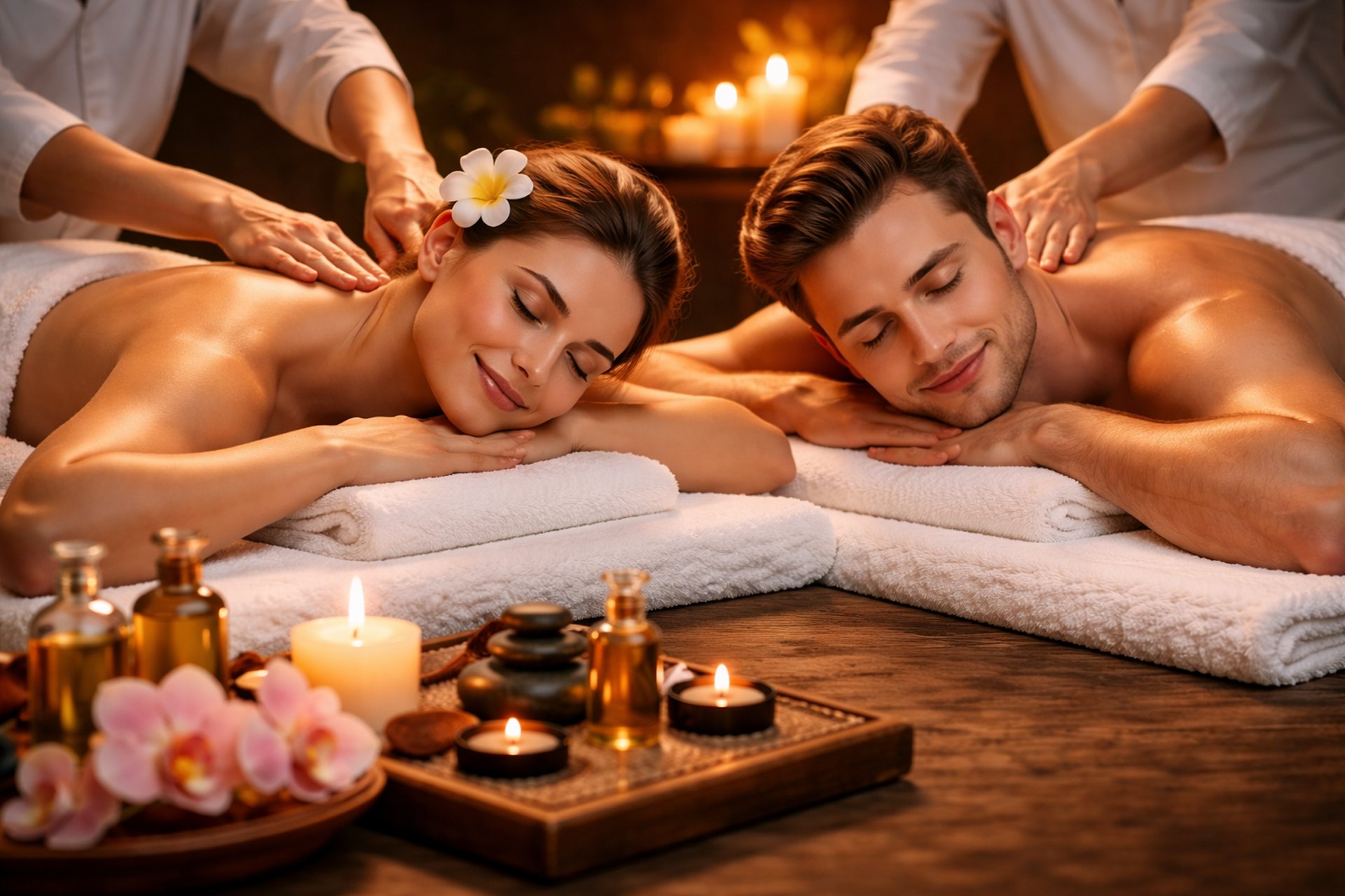 Enjoy a side-by-side massage session with your partner in a serene setting.